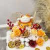 ラッキーキャットとソープローズの楽しいギフトボックスアレンジメント。ハッピーで思いやりのあるプレゼントを演出します。 箱の寸法: 26cm(L) x 26cm(W) x 31cm(H)