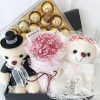 フェレロロシェ24ピースとミニレッドベビーズブーケを添えた愛らしいペアのウェディングベアは、愛と喜び、そしてチョコレートの魔法をかけてくれます。 おおよその寸法: 31cm(W) x 33cm(H)